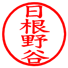 [朱肉の色]を選び、入力窓に“日根野谷”と入力して[生成]ボタンを押すと、印影が更新され、リンクから電子印鑑(デジタル印影)がダウンロードできます。 電子印鑑「日根野谷」の作り方文字表示が変なときや、文字バランスが悪いときは[字形切替]のチェックボックスでON/OFFを切り替え[生成]しなおしてください。 生成される画像は通常の印影「日根野谷.png」と、にじみを表現した少し太めの印影「日根野谷B.png」の背面透過PNG形式2種と、鮮明なPDF形式の印影「日根野谷.pdf」の計3種類です。 朱肉の微妙な色の違いを7色で表現しました。デフォルト(左端)は、JISが定めた朱肉の色のマンセル値(7.5R 5/14)をRGB値(217,66,54)に変換したものになっています。 「電子透かし」にチェックを入れて[生成]ボタンを押すと、タイムスタンプを電子透かしとして埋め込んだセキュアな電子印鑑が作れます。詳細は別ページの「タイムスタンプと電子透かし」でご覧ください。 日根野谷さんの日付印が作れます。「日付スタンプメーカー」は、社内向けの書類に利用されることの多い日付印(データ印)が無料で作れるWebアプリケーションです。中段に日付が入り、上段と下段は、ともに8文字まで文字が入ります。 ![]() 古代文字で落款印が作れます。「落款スタンプメーカー」で作品を引き立たせる落款印が作れます。