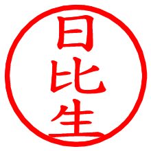 [朱肉の色]を選び、入力窓に“日比生”と入力して[生成]ボタンを押すと、印影が更新され、リンクから電子印鑑(デジタル印影)がダウンロードできます。 電子印鑑「日比生」の作り方文字表示が変なときや、文字バランスが悪いときは[字形切替]のチェックボックスでON/OFFを切り替え[生成]しなおしてください。 生成される画像は通常の印影「日比生.png」と、にじみを表現した少し太めの印影「日比生B.png」の背面透過PNG形式2種と、鮮明なPDF形式の印影「日比生.pdf」の計3種類です。 朱肉の微妙な色の違いを7色で表現しました。デフォルト(左端)は、JISが定めた朱肉の色のマンセル値(7.5R 5/14)をRGB値(217,66,54)に変換したものになっています。 「電子透かし」にチェックを入れて[生成]ボタンを押すと、タイムスタンプを電子透かしとして埋め込んだセキュアな電子印鑑が作れます。詳細は別ページの「タイムスタンプと電子透かし」でご覧ください。 日比生さんの日付印が作れます。「日付スタンプメーカー」は、社内向けの書類に利用されることの多い日付印(データ印)が無料で作れるWebアプリケーションです。中段に日付が入り、上段と下段は、ともに8文字まで文字が入ります。 ![]() 古代文字で落款印が作れます。「落款スタンプメーカー」で作品を引き立たせる落款印が作れます。