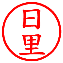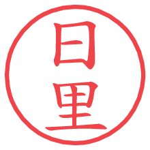 [朱肉の色]を選び、入力窓に“日里”と入力して[生成]ボタンを押すと、印影が更新され、リンクから電子印鑑(デジタル印影)がダウンロードできます。 電子印鑑「日里」の作り方文字表示が変なときや、文字バランスが悪いときは[字形切替]のチェックボックスでON/OFFを切り替え[生成]しなおしてください。 生成される画像は通常の印影「日里.png」と、にじみを表現した少し太めの印影「日里B.png」の背面透過PNG形式2種と、鮮明なPDF形式の印影「日里.pdf」の計3種類です。 朱肉の微妙な色の違いを7色で表現しました。デフォルト(左端)は、JISが定めた朱肉の色のマンセル値(7.5R 5/14)をRGB値(217,66,54)に変換したものになっています。 「電子透かし」にチェックを入れて[生成]ボタンを押すと、タイムスタンプを電子透かしとして埋め込んだセキュアな電子印鑑が作れます。詳細は別ページの「タイムスタンプと電子透かし」でご覧ください。 日里さんの日付印が作れます。「日付スタンプメーカー」は、社内向けの書類に利用されることの多い日付印(データ印)が無料で作れるWebアプリケーションです。中段に日付が入り、上段と下段は、ともに8文字まで文字が入ります。 ![]() 古代文字で落款印が作れます。「落款スタンプメーカー」で作品を引き立たせる落款印が作れます。