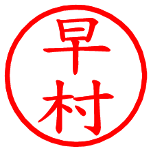 [朱肉の色]を選び、入力窓に“早村”と入力して[生成]ボタンを押すと、印影が更新され、リンクから電子印鑑(デジタル印影)がダウンロードできます。 電子印鑑「早村」の作り方文字表示が変なときや、文字バランスが悪いときは[字形切替]のチェックボックスでON/OFFを切り替え[生成]しなおしてください。 生成される画像は通常の印影「早村.png」と、にじみを表現した少し太めの印影「早村B.png」の背面透過PNG形式2種と、鮮明なPDF形式の印影「早村.pdf」の計3種類です。 朱肉の微妙な色の違いを7色で表現しました。デフォルト(左端)は、JISが定めた朱肉の色のマンセル値(7.5R 5/14)をRGB値(217,66,54)に変換したものになっています。 「電子透かし」にチェックを入れて[生成]ボタンを押すと、タイムスタンプを電子透かしとして埋め込んだセキュアな電子印鑑が作れます。詳細は別ページの「タイムスタンプと電子透かし」でご覧ください。 早村さんの日付印が作れます。「日付スタンプメーカー」は、社内向けの書類に利用されることの多い日付印(データ印)が無料で作れるWebアプリケーションです。中段に日付が入り、上段と下段は、ともに8文字まで文字が入ります。 ![]() 古代文字で落款印が作れます。「落款スタンプメーカー」で作品を引き立たせる落款印が作れます。