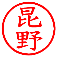 [朱肉の色]を選び、入力窓に“昆野”と入力して[生成]ボタンを押すと、印影が更新され、リンクから電子印鑑(デジタル印影)がダウンロードできます。 電子印鑑「昆野」の作り方文字表示が変なときや、文字バランスが悪いときは[字形切替]のチェックボックスでON/OFFを切り替え[生成]しなおしてください。 生成される画像は通常の印影「昆野.png」と、にじみを表現した少し太めの印影「昆野B.png」の背面透過PNG形式2種と、鮮明なPDF形式の印影「昆野.pdf」の計3種類です。 朱肉の微妙な色の違いを7色で表現しました。デフォルト(左端)は、JISが定めた朱肉の色のマンセル値(7.5R 5/14)をRGB値(217,66,54)に変換したものになっています。 「電子透かし」にチェックを入れて[生成]ボタンを押すと、タイムスタンプを透かしとして埋め込んだセキュアな電子印鑑が作れます。詳細は別ページの「電子透かしとタイムスタンプ」でご覧ください。 昆野さんの日付印が作れます。「日付スタンプメーカー」は、社内向けの書類に利用されることの多い日付印(データ印)が無料で作れるWebアプリケーションです。中段に日付が入り、上段と下段は、ともに8文字まで文字が入ります。 ![]() 古代文字で落款印が作れます。「落款スタンプメーカー」で作品を引き立たせる落款印が作れます。
