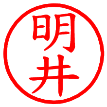 [朱肉の色]を選び、入力窓に“明井”と入力して[生成]ボタンを押すと、印影が更新され、リンクから電子印鑑(デジタル印影)がダウンロードできます。 電子印鑑「明井」の作り方文字表示が変なときや、文字バランスが悪いときは[字形切替]のチェックボックスでON/OFFを切り替え[生成]しなおしてください。 生成される画像は通常の印影「明井.png」と、にじみを表現した少し太めの印影「明井B.png」の背面透過PNG形式2種と、鮮明なPDF形式の印影「明井.pdf」の計3種類です。 朱肉の微妙な色の違いを7色で表現しました。デフォルト(左端)は、JISが定めた朱肉の色のマンセル値(7.5R 5/14)をRGB値(217,66,54)に変換したものになっています。 「電子透かし」にチェックを入れて[生成]ボタンを押すと、タイムスタンプを電子透かしとして埋め込んだセキュアな電子印鑑が作れます。詳細は別ページの「タイムスタンプと電子透かし」でご覧ください。 明井さんの日付印が作れます。「日付スタンプメーカー」は、社内向けの書類に利用されることの多い日付印(データ印)が無料で作れるWebアプリケーションです。中段に日付が入り、上段と下段は、ともに8文字まで文字が入ります。 ![]() 古代文字で落款印が作れます。「落款スタンプメーカー」で作品を引き立たせる落款印が作れます。