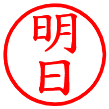 [朱肉の色]を選び、入力窓に“明日”と入力して[生成]ボタンを押すと、印影が更新され、リンクから電子印鑑(デジタル印影)がダウンロードできます。 電子印鑑「明日」の作り方文字表示が変なときや、文字バランスが悪いときは[字形切替]のチェックボックスでON/OFFを切り替え[生成]しなおしてください。 生成される画像は通常の印影「明日.png」と、にじみを表現した少し太めの印影「明日B.png」の背面透過PNG形式2種と、鮮明なPDF形式の印影「明日.pdf」の計3種類です。 朱肉の微妙な色の違いを7色で表現しました。デフォルト(左端)は、JISが定めた朱肉の色のマンセル値(7.5R 5/14)をRGB値(217,66,54)に変換したものになっています。 「電子透かし」にチェックを入れて[生成]ボタンを押すと、タイムスタンプを電子透かしとして埋め込んだセキュアな電子印鑑が作れます。詳細は別ページの「タイムスタンプと電子透かし」でご覧ください。 明日さんの日付印が作れます。「日付スタンプメーカー」は、社内向けの書類に利用されることの多い日付印(データ印)が無料で作れるWebアプリケーションです。中段に日付が入り、上段と下段は、ともに8文字まで文字が入ります。 ![]() 古代文字で落款印が作れます。「落款スタンプメーカー」で作品を引き立たせる落款印が作れます。