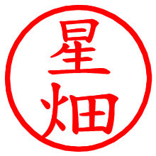 [朱肉の色]を選び、入力窓に“星畑”と入力して[生成]ボタンを押すと、印影が更新され、リンクから電子印鑑(デジタル印影)がダウンロードできます。 電子印鑑「星畑」の作り方文字表示が変なときや、文字バランスが悪いときは[字形切替]のチェックボックスでON/OFFを切り替え[生成]しなおしてください。 生成される画像は通常の印影「星畑.png」と、にじみを表現した少し太めの印影「星畑B.png」の背面透過PNG形式2種と、鮮明なPDF形式の印影「星畑.pdf」の計3種類です。 朱肉の微妙な色の違いを7色で表現しました。デフォルト(左端)は、JISが定めた朱肉の色のマンセル値(7.5R 5/14)をRGB値(217,66,54)に変換したものになっています。 「電子透かし」にチェックを入れて[生成]ボタンを押すと、タイムスタンプを電子透かしとして埋め込んだセキュアな電子印鑑が作れます。詳細は別ページの「タイムスタンプと電子透かし」でご覧ください。 星畑さんの日付印が作れます。「日付スタンプメーカー」は、社内向けの書類に利用されることの多い日付印(データ印)が無料で作れるWebアプリケーションです。中段に日付が入り、上段と下段は、ともに8文字まで文字が入ります。 ![]() 古代文字で落款印が作れます。「落款スタンプメーカー」で作品を引き立たせる落款印が作れます。