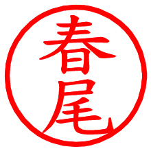 [朱肉の色]を選び、入力窓に“春尾”と入力して[生成]ボタンを押すと、印影が更新され、リンクから電子印鑑(デジタル印影)がダウンロードできます。 電子印鑑「春尾」の作り方文字表示が変なときや、文字バランスが悪いときは[字形切替]のチェックボックスでON/OFFを切り替え[生成]しなおしてください。 生成される画像は通常の印影「春尾.png」と、にじみを表現した少し太めの印影「春尾B.png」の背面透過PNG形式2種と、鮮明なPDF形式の印影「春尾.pdf」の計3種類です。 朱肉の微妙な色の違いを7色で表現しました。デフォルト(左端)は、JISが定めた朱肉の色のマンセル値(7.5R 5/14)をRGB値(217,66,54)に変換したものになっています。 「電子透かし」にチェックを入れて[生成]ボタンを押すと、タイムスタンプを電子透かしとして埋め込んだセキュアな電子印鑑が作れます。詳細は別ページの「タイムスタンプと電子透かし」でご覧ください。 春尾さんの日付印が作れます。「日付スタンプメーカー」は、社内向けの書類に利用されることの多い日付印(データ印)が無料で作れるWebアプリケーションです。中段に日付が入り、上段と下段は、ともに8文字まで文字が入ります。 ![]() 古代文字で落款印が作れます。「落款スタンプメーカー」で作品を引き立たせる落款印が作れます。