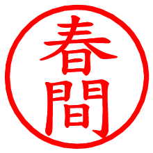 [朱肉の色]を選び、入力窓に“春間”と入力して[生成]ボタンを押すと、印影が更新され、リンクから電子印鑑(デジタル印影)がダウンロードできます。 電子印鑑「春間」の作り方文字表示が変なときや、文字バランスが悪いときは[字形切替]のチェックボックスでON/OFFを切り替え[生成]しなおしてください。 生成される画像は通常の印影「春間.png」と、にじみを表現した少し太めの印影「春間B.png」の背面透過PNG形式2種と、鮮明なPDF形式の印影「春間.pdf」の計3種類です。 朱肉の微妙な色の違いを7色で表現しました。デフォルト(左端)は、JISが定めた朱肉の色のマンセル値(7.5R 5/14)をRGB値(217,66,54)に変換したものになっています。 「電子透かし」にチェックを入れて[生成]ボタンを押すと、タイムスタンプを電子透かしとして埋め込んだセキュアな電子印鑑が作れます。詳細は別ページの「タイムスタンプと電子透かし」でご覧ください。 春間さんの日付印が作れます。「日付スタンプメーカー」は、社内向けの書類に利用されることの多い日付印(データ印)が無料で作れるWebアプリケーションです。中段に日付が入り、上段と下段は、ともに8文字まで文字が入ります。 ![]() 古代文字で落款印が作れます。「落款スタンプメーカー」で作品を引き立たせる落款印が作れます。