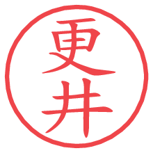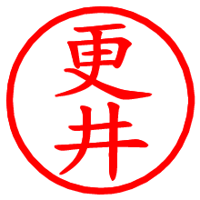 [朱肉の色]を選び、入力窓に“更井”と入力して[生成]ボタンを押すと、印影が更新され、リンクから電子印鑑(デジタル印影)がダウンロードできます。 電子印鑑「更井」の作り方文字表示が変なときや、文字バランスが悪いときは[字形切替]のチェックボックスでON/OFFを切り替え[生成]しなおしてください。 生成される画像は通常の印影「更井.png」と、にじみを表現した少し太めの印影「更井B.png」の背面透過PNG形式2種と、鮮明なPDF形式の印影「更井.pdf」の計3種類です。 朱肉の微妙な色の違いを7色で表現しました。デフォルト(左端)は、JISが定めた朱肉の色のマンセル値(7.5R 5/14)をRGB値(217,66,54)に変換したものになっています。 「電子透かし」にチェックを入れて[生成]ボタンを押すと、タイムスタンプを電子透かしとして埋め込んだセキュアな電子印鑑が作れます。詳細は別ページの「タイムスタンプと電子透かし」でご覧ください。 更井さんの日付印が作れます。「日付スタンプメーカー」は、社内向けの書類に利用されることの多い日付印(データ印)が無料で作れるWebアプリケーションです。中段に日付が入り、上段と下段は、ともに8文字まで文字が入ります。 ![]() 古代文字で落款印が作れます。「落款スタンプメーカー」で作品を引き立たせる落款印が作れます。