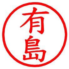 [朱肉の色]を選び、入力窓に“有島”と入力して[生成]ボタンを押すと、印影が更新され、リンクから電子印鑑(デジタル印影)がダウンロードできます。 電子印鑑「有島」の作り方文字表示が変なときや、文字バランスが悪いときは[字形切替]のチェックボックスでON/OFFを切り替え[生成]しなおしてください。 生成される画像は通常の印影「有島.png」と、にじみを表現した少し太めの印影「有島B.png」の背面透過PNG形式2種と、鮮明なPDF形式の印影「有島.pdf」の計3種類です。 朱肉の微妙な色の違いを7色で表現しました。デフォルト(左端)は、JISが定めた朱肉の色のマンセル値(7.5R 5/14)をRGB値(217,66,54)に変換したものになっています。 「電子透かし」にチェックを入れて[生成]ボタンを押すと、タイムスタンプを電子透かしとして埋め込んだセキュアな電子印鑑が作れます。詳細は別ページの「タイムスタンプと電子透かし」でご覧ください。 有島さんの日付印が作れます。「日付スタンプメーカー」は、社内向けの書類に利用されることの多い日付印(データ印)が無料で作れるWebアプリケーションです。中段に日付が入り、上段と下段は、ともに8文字まで文字が入ります。 ![]() 古代文字で落款印が作れます。「落款スタンプメーカー」で作品を引き立たせる落款印が作れます。