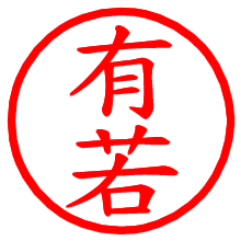 [朱肉の色]を選び、入力窓に“有若”と入力して[生成]ボタンを押すと、印影が更新され、リンクから電子印鑑(デジタル印影)がダウンロードできます。 電子印鑑「有若」の作り方文字表示が変なときや、文字バランスが悪いときは[字形切替]のチェックボックスでON/OFFを切り替え[生成]しなおしてください。 生成される画像は通常の印影「有若.png」と、にじみを表現した少し太めの印影「有若B.png」の背面透過PNG形式2種と、鮮明なPDF形式の印影「有若.pdf」の計3種類です。 朱肉の微妙な色の違いを7色で表現しました。デフォルト(左端)は、JISが定めた朱肉の色のマンセル値(7.5R 5/14)をRGB値(217,66,54)に変換したものになっています。 「電子透かし」にチェックを入れて[生成]ボタンを押すと、タイムスタンプを透かしとして埋め込んだセキュアな電子印鑑が作れます。詳細は別ページの「電子透かしとタイムスタンプ」でご覧ください。 有若さんの日付印が作れます。「日付スタンプメーカー」は、社内向けの書類に利用されることの多い日付印(データ印)が無料で作れるWebアプリケーションです。中段に日付が入り、上段と下段は、ともに8文字まで文字が入ります。 ![]() 古代文字で落款印が作れます。「落款スタンプメーカー」で作品を引き立たせる落款印が作れます。