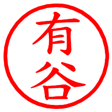 [朱肉の色]を選び、入力窓に“有谷”と入力して[生成]ボタンを押すと、印影が更新され、リンクから電子印鑑(デジタル印影)がダウンロードできます。 電子印鑑「有谷」の作り方文字表示が変なときや、文字バランスが悪いときは[字形切替]のチェックボックスでON/OFFを切り替え[生成]しなおしてください。 生成される画像は通常の印影「有谷.png」と、にじみを表現した少し太めの印影「有谷B.png」の背面透過PNG形式2種と、鮮明なPDF形式の印影「有谷.pdf」の計3種類です。 朱肉の微妙な色の違いを7色で表現しました。デフォルト(左端)は、JISが定めた朱肉の色のマンセル値(7.5R 5/14)をRGB値(217,66,54)に変換したものになっています。 「電子透かし」にチェックを入れて[生成]ボタンを押すと、タイムスタンプを電子透かしとして埋め込んだセキュアな電子印鑑が作れます。詳細は別ページの「タイムスタンプと電子透かし」でご覧ください。 有谷さんの日付印が作れます。「日付スタンプメーカー」は、社内向けの書類に利用されることの多い日付印(データ印)が無料で作れるWebアプリケーションです。中段に日付が入り、上段と下段は、ともに8文字まで文字が入ります。 ![]() 古代文字で落款印が作れます。「落款スタンプメーカー」で作品を引き立たせる落款印が作れます。