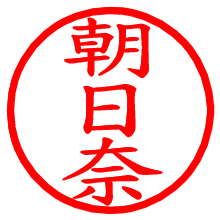 [朱肉の色]を選び、入力窓に“朝日奈”と入力して[生成]ボタンを押すと、印影が更新され、リンクから電子印鑑(デジタル印影)がダウンロードできます。 電子印鑑「朝日奈」の作り方文字表示が変なときや、文字バランスが悪いときは[字形切替]のチェックボックスでON/OFFを切り替え[生成]しなおしてください。 生成される画像は通常の印影「朝日奈.png」と、にじみを表現した少し太めの印影「朝日奈B.png」の背面透過PNG形式2種と、鮮明なPDF形式の印影「朝日奈.pdf」の計3種類です。 朱肉の微妙な色の違いを7色で表現しました。デフォルト(左端)は、JISが定めた朱肉の色のマンセル値(7.5R 5/14)をRGB値(217,66,54)に変換したものになっています。 「電子透かし」にチェックを入れて[生成]ボタンを押すと、タイムスタンプを電子透かしとして埋め込んだセキュアな電子印鑑が作れます。詳細は別ページの「タイムスタンプと電子透かし」でご覧ください。 朝日奈さんの日付印が作れます。「日付スタンプメーカー」は、社内向けの書類に利用されることの多い日付印(データ印)が無料で作れるWebアプリケーションです。中段に日付が入り、上段と下段は、ともに8文字まで文字が入ります。 ![]() 古代文字で落款印が作れます。「落款スタンプメーカー」で作品を引き立たせる落款印が作れます。