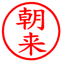 [朱肉の色]を選び、入力窓に“朝来”と入力して[生成]ボタンを押すと、印影が更新され、リンクから電子印鑑(デジタル印影)がダウンロードできます。 電子印鑑「朝来」の作り方文字表示が変なときや、文字バランスが悪いときは[字形切替]のチェックボックスでON/OFFを切り替え[生成]しなおしてください。 生成される画像は通常の印影「朝来.png」と、にじみを表現した少し太めの印影「朝来B.png」の背面透過PNG形式2種と、鮮明なPDF形式の印影「朝来.pdf」の計3種類です。 朱肉の微妙な色の違いを7色で表現しました。デフォルト(左端)は、JISが定めた朱肉の色のマンセル値(7.5R 5/14)をRGB値(217,66,54)に変換したものになっています。 「電子透かし」にチェックを入れて[生成]ボタンを押すと、タイムスタンプを電子透かしとして埋め込んだセキュアな電子印鑑が作れます。詳細は別ページの「タイムスタンプと電子透かし」でご覧ください。 朝来さんの日付印が作れます。「日付スタンプメーカー」は、社内向けの書類に利用されることの多い日付印(データ印)が無料で作れるWebアプリケーションです。中段に日付が入り、上段と下段は、ともに8文字まで文字が入ります。 ![]() 古代文字で落款印が作れます。「落款スタンプメーカー」で作品を引き立たせる落款印が作れます。