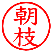 [朱肉の色]を選び、入力窓に“朝枝”と入力して[生成]ボタンを押すと、印影が更新され、リンクから電子印鑑(デジタル印影)がダウンロードできます。 電子印鑑「朝枝」の作り方文字表示が変なときや、文字バランスが悪いときは[字形切替]のチェックボックスでON/OFFを切り替え[生成]しなおしてください。 生成される画像は通常の印影「朝枝.png」と、にじみを表現した少し太めの印影「朝枝B.png」の背面透過PNG形式2種と、鮮明なPDF形式の印影「朝枝.pdf」の計3種類です。 朱肉の微妙な色の違いを7色で表現しました。デフォルト(左端)は、JISが定めた朱肉の色のマンセル値(7.5R 5/14)をRGB値(217,66,54)に変換したものになっています。 「電子透かし」にチェックを入れて[生成]ボタンを押すと、タイムスタンプを電子透かしとして埋め込んだセキュアな電子印鑑が作れます。詳細は別ページの「タイムスタンプと電子透かし」でご覧ください。 朝枝さんの日付印が作れます。「日付スタンプメーカー」は、社内向けの書類に利用されることの多い日付印(データ印)が無料で作れるWebアプリケーションです。中段に日付が入り、上段と下段は、ともに8文字まで文字が入ります。 ![]() 古代文字で落款印が作れます。「落款スタンプメーカー」で作品を引き立たせる落款印が作れます。