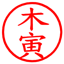 [朱肉の色]を選び、入力窓に“木寅”と入力して[生成]ボタンを押すと、印影が更新され、リンクから電子印鑑(デジタル印影)がダウンロードできます。 電子印鑑「木寅」の作り方文字表示が変なときや、文字バランスが悪いときは[字形切替]のチェックボックスでON/OFFを切り替え[生成]しなおしてください。 生成される画像は通常の印影「木寅.png」と、にじみを表現した少し太めの印影「木寅B.png」の背面透過PNG形式2種と、鮮明なPDF形式の印影「木寅.pdf」の計3種類です。 朱肉の微妙な色の違いを7色で表現しました。デフォルト(左端)は、JISが定めた朱肉の色のマンセル値(7.5R 5/14)をRGB値(217,66,54)に変換したものになっています。 「電子透かし」にチェックを入れて[生成]ボタンを押すと、タイムスタンプを電子透かしとして埋め込んだセキュアな電子印鑑が作れます。詳細は別ページの「タイムスタンプと電子透かし」でご覧ください。 木寅さんの日付印が作れます。「日付スタンプメーカー」は、社内向けの書類に利用されることの多い日付印(データ印)が無料で作れるWebアプリケーションです。中段に日付が入り、上段と下段は、ともに8文字まで文字が入ります。 ![]() 古代文字で落款印が作れます。「落款スタンプメーカー」で作品を引き立たせる落款印が作れます。