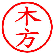 [朱肉の色]を選び、入力窓に“木方”と入力して[生成]ボタンを押すと、印影が更新され、リンクから電子印鑑(デジタル印影)がダウンロードできます。 電子印鑑「木方」の作り方文字表示が変なときや、文字バランスが悪いときは[字形切替]のチェックボックスでON/OFFを切り替え[生成]しなおしてください。 生成される画像は通常の印影「木方.png」と、にじみを表現した少し太めの印影「木方B.png」の背面透過PNG形式2種と、鮮明なPDF形式の印影「木方.pdf」の計3種類です。 朱肉の微妙な色の違いを7色で表現しました。デフォルト(左端)は、JISが定めた朱肉の色のマンセル値(7.5R 5/14)をRGB値(217,66,54)に変換したものになっています。 「電子透かし」にチェックを入れて[生成]ボタンを押すと、タイムスタンプを電子透かしとして埋め込んだセキュアな電子印鑑が作れます。詳細は別ページの「タイムスタンプと電子透かし」でご覧ください。 木方さんの日付印が作れます。「日付スタンプメーカー」は、社内向けの書類に利用されることの多い日付印(データ印)が無料で作れるWebアプリケーションです。中段に日付が入り、上段と下段は、ともに8文字まで文字が入ります。 ![]() 古代文字で落款印が作れます。「落款スタンプメーカー」で作品を引き立たせる落款印が作れます。
