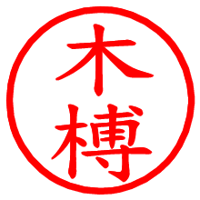[朱肉の色]を選び、入力窓に“木榑”と入力して[生成]ボタンを押すと、印影が更新され、リンクから電子印鑑(デジタル印影)がダウンロードできます。 電子印鑑「木榑」の作り方文字表示が変なときや、文字バランスが悪いときは[字形切替]のチェックボックスでON/OFFを切り替え[生成]しなおしてください。 生成される画像は通常の印影「木榑.png」と、にじみを表現した少し太めの印影「木榑B.png」の背面透過PNG形式2種と、鮮明なPDF形式の印影「木榑.pdf」の計3種類です。 朱肉の微妙な色の違いを7色で表現しました。デフォルト(左端)は、JISが定めた朱肉の色のマンセル値(7.5R 5/14)をRGB値(217,66,54)に変換したものになっています。 「電子透かし」にチェックを入れて[生成]ボタンを押すと、タイムスタンプを電子透かしとして埋め込んだセキュアな電子印鑑が作れます。詳細は別ページの「タイムスタンプと電子透かし」でご覧ください。 木榑さんの日付印が作れます。「日付スタンプメーカー」は、社内向けの書類に利用されることの多い日付印(データ印)が無料で作れるWebアプリケーションです。中段に日付が入り、上段と下段は、ともに8文字まで文字が入ります。 ![]() 古代文字で落款印が作れます。「落款スタンプメーカー」で作品を引き立たせる落款印が作れます。