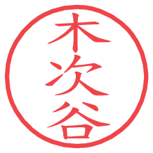 [朱肉の色]を選び、入力窓に“木次谷”と入力して[生成]ボタンを押すと、印影が更新され、リンクから電子印鑑(デジタル印影)がダウンロードできます。 電子印鑑「木次谷」の作り方文字表示が変なときや、文字バランスが悪いときは[字形切替]のチェックボックスでON/OFFを切り替え[生成]しなおしてください。 生成される画像は通常の印影「木次谷.png」と、にじみを表現した少し太めの印影「木次谷B.png」の背面透過PNG形式2種と、鮮明なPDF形式の印影「木次谷.pdf」の計3種類です。 朱肉の微妙な色の違いを7色で表現しました。デフォルト(左端)は、JISが定めた朱肉の色のマンセル値(7.5R 5/14)をRGB値(217,66,54)に変換したものになっています。 「電子透かし」にチェックを入れて[生成]ボタンを押すと、タイムスタンプを電子透かしとして埋め込んだセキュアな電子印鑑が作れます。詳細は別ページの「タイムスタンプと電子透かし」でご覧ください。 木次谷さんの日付印が作れます。「日付スタンプメーカー」は、社内向けの書類に利用されることの多い日付印(データ印)が無料で作れるWebアプリケーションです。中段に日付が入り、上段と下段は、ともに8文字まで文字が入ります。 ![]() 古代文字で落款印が作れます。「落款スタンプメーカー」で作品を引き立たせる落款印が作れます。