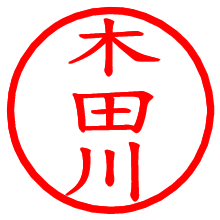 [朱肉の色]を選び、入力窓に“木田川”と入力して[生成]ボタンを押すと、印影が更新され、リンクから電子印鑑(デジタル印影)がダウンロードできます。 電子印鑑「木田川」の作り方文字表示が変なときや、文字バランスが悪いときは[字形切替]のチェックボックスでON/OFFを切り替え[生成]しなおしてください。 生成される画像は通常の印影「木田川.png」と、にじみを表現した少し太めの印影「木田川B.png」の背面透過PNG形式2種と、鮮明なPDF形式の印影「木田川.pdf」の計3種類です。 朱肉の微妙な色の違いを7色で表現しました。デフォルト(左端)は、JISが定めた朱肉の色のマンセル値(7.5R 5/14)をRGB値(217,66,54)に変換したものになっています。 「電子透かし」にチェックを入れて[生成]ボタンを押すと、タイムスタンプを透かしとして埋め込んだセキュアな電子印鑑が作れます。詳細は別ページの「電子透かしとタイムスタンプ」でご覧ください。 木田川さんの日付印が作れます。「日付スタンプメーカー」は、社内向けの書類に利用されることの多い日付印(データ印)が無料で作れるWebアプリケーションです。中段に日付が入り、上段と下段は、ともに8文字まで文字が入ります。 ![]() 古代文字で落款印が作れます。「落款スタンプメーカー」で作品を引き立たせる落款印が作れます。