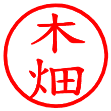 [朱肉の色]を選び、入力窓に“木畑”と入力して[生成]ボタンを押すと、印影が更新され、リンクから電子印鑑(デジタル印影)がダウンロードできます。 電子印鑑「木畑」の作り方文字表示が変なときや、文字バランスが悪いときは[字形切替]のチェックボックスでON/OFFを切り替え[生成]しなおしてください。 生成される画像は通常の印影「木畑.png」と、にじみを表現した少し太めの印影「木畑B.png」の背面透過PNG形式2種と、鮮明なPDF形式の印影「木畑.pdf」の計3種類です。 朱肉の微妙な色の違いを7色で表現しました。デフォルト(左端)は、JISが定めた朱肉の色のマンセル値(7.5R 5/14)をRGB値(217,66,54)に変換したものになっています。 「電子透かし」にチェックを入れて[生成]ボタンを押すと、タイムスタンプを電子透かしとして埋め込んだセキュアな電子印鑑が作れます。詳細は別ページの「タイムスタンプと電子透かし」でご覧ください。 木畑さんの日付印が作れます。「日付スタンプメーカー」は、社内向けの書類に利用されることの多い日付印(データ印)が無料で作れるWebアプリケーションです。中段に日付が入り、上段と下段は、ともに8文字まで文字が入ります。 ![]() 古代文字で落款印が作れます。「落款スタンプメーカー」で作品を引き立たせる落款印が作れます。