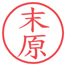 [朱肉の色]を選び、入力窓に“末原”と入力して[生成]ボタンを押すと、印影が更新され、リンクから電子印鑑(デジタル印影)がダウンロードできます。 電子印鑑「末原」の作り方文字表示が変なときや、文字バランスが悪いときは[字形切替]のチェックボックスでON/OFFを切り替え[生成]しなおしてください。 生成される画像は通常の印影「末原.png」と、にじみを表現した少し太めの印影「末原B.png」の背面透過PNG形式2種と、鮮明なPDF形式の印影「末原.pdf」の計3種類です。 朱肉の微妙な色の違いを7色で表現しました。デフォルト(左端)は、JISが定めた朱肉の色のマンセル値(7.5R 5/14)をRGB値(217,66,54)に変換したものになっています。 「電子透かし」にチェックを入れて[生成]ボタンを押すと、タイムスタンプを電子透かしとして埋め込んだセキュアな電子印鑑が作れます。詳細は別ページの「タイムスタンプと電子透かし」でご覧ください。 末原さんの日付印が作れます。「日付スタンプメーカー」は、社内向けの書類に利用されることの多い日付印(データ印)が無料で作れるWebアプリケーションです。中段に日付が入り、上段と下段は、ともに8文字まで文字が入ります。 ![]() 古代文字で落款印が作れます。「落款スタンプメーカー」で作品を引き立たせる落款印が作れます。
