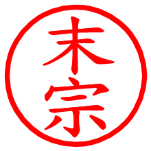 [朱肉の色]を選び、入力窓に“末宗”と入力して[生成]ボタンを押すと、印影が更新され、リンクから電子印鑑(デジタル印影)がダウンロードできます。 電子印鑑「末宗」の作り方文字表示が変なときや、文字バランスが悪いときは[字形切替]のチェックボックスでON/OFFを切り替え[生成]しなおしてください。 生成される画像は通常の印影「末宗.png」と、にじみを表現した少し太めの印影「末宗B.png」の背面透過PNG形式2種と、鮮明なPDF形式の印影「末宗.pdf」の計3種類です。 朱肉の微妙な色の違いを7色で表現しました。デフォルト(左端)は、JISが定めた朱肉の色のマンセル値(7.5R 5/14)をRGB値(217,66,54)に変換したものになっています。 「電子透かし」にチェックを入れて[生成]ボタンを押すと、タイムスタンプを電子透かしとして埋め込んだセキュアな電子印鑑が作れます。詳細は別ページの「タイムスタンプと電子透かし」でご覧ください。 末宗さんの日付印が作れます。「日付スタンプメーカー」は、社内向けの書類に利用されることの多い日付印(データ印)が無料で作れるWebアプリケーションです。中段に日付が入り、上段と下段は、ともに8文字まで文字が入ります。 ![]() 古代文字で落款印が作れます。「落款スタンプメーカー」で作品を引き立たせる落款印が作れます。