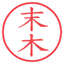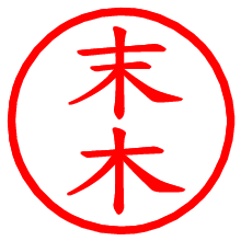 [朱肉の色]を選び、入力窓に“末木”と入力して[生成]ボタンを押すと、印影が更新され、リンクから電子印鑑(デジタル印影)がダウンロードできます。 電子印鑑「末木」の作り方文字表示が変なときや、文字バランスが悪いときは[字形切替]のチェックボックスでON/OFFを切り替え[生成]しなおしてください。 生成される画像は通常の印影「末木.png」と、にじみを表現した少し太めの印影「末木B.png」の背面透過PNG形式2種と、鮮明なPDF形式の印影「末木.pdf」の計3種類です。 朱肉の微妙な色の違いを7色で表現しました。デフォルト(左端)は、JISが定めた朱肉の色のマンセル値(7.5R 5/14)をRGB値(217,66,54)に変換したものになっています。 「電子透かし」にチェックを入れて[生成]ボタンを押すと、タイムスタンプを電子透かしとして埋め込んだセキュアな電子印鑑が作れます。詳細は別ページの「タイムスタンプと電子透かし」でご覧ください。 末木さんの日付印が作れます。「日付スタンプメーカー」は、社内向けの書類に利用されることの多い日付印(データ印)が無料で作れるWebアプリケーションです。中段に日付が入り、上段と下段は、ともに8文字まで文字が入ります。 ![]() 古代文字で落款印が作れます。「落款スタンプメーカー」で作品を引き立たせる落款印が作れます。