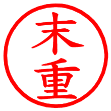 [朱肉の色]を選び、入力窓に“末重”と入力して[生成]ボタンを押すと、印影が更新され、リンクから電子印鑑(デジタル印影)がダウンロードできます。 電子印鑑「末重」の作り方文字表示が変なときや、文字バランスが悪いときは[字形切替]のチェックボックスでON/OFFを切り替え[生成]しなおしてください。 生成される画像は通常の印影「末重.png」と、にじみを表現した少し太めの印影「末重B.png」の背面透過PNG形式2種と、鮮明なPDF形式の印影「末重.pdf」の計3種類です。 朱肉の微妙な色の違いを7色で表現しました。デフォルト(左端)は、JISが定めた朱肉の色のマンセル値(7.5R 5/14)をRGB値(217,66,54)に変換したものになっています。 「電子透かし」にチェックを入れて[生成]ボタンを押すと、タイムスタンプを透かしとして埋め込んだセキュアな電子印鑑が作れます。詳細は別ページの「電子透かしとタイムスタンプ」でご覧ください。 末重さんの日付印が作れます。「日付スタンプメーカー」は、社内向けの書類に利用されることの多い日付印(データ印)が無料で作れるWebアプリケーションです。中段に日付が入り、上段と下段は、ともに8文字まで文字が入ります。 ![]() 古代文字で落款印が作れます。「落款スタンプメーカー」で作品を引き立たせる落款印が作れます。
