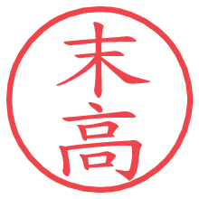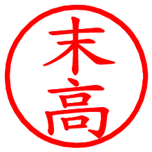 [朱肉の色]を選び、入力窓に“末高”と入力して[生成]ボタンを押すと、印影が更新され、リンクから電子印鑑(デジタル印影)がダウンロードできます。 電子印鑑「末高」の作り方文字表示が変なときや、文字バランスが悪いときは[字形切替]のチェックボックスでON/OFFを切り替え[生成]しなおしてください。 生成される画像は通常の印影「末高.png」と、にじみを表現した少し太めの印影「末高B.png」の背面透過PNG形式2種と、鮮明なPDF形式の印影「末高.pdf」の計3種類です。 朱肉の微妙な色の違いを7色で表現しました。デフォルト(左端)は、JISが定めた朱肉の色のマンセル値(7.5R 5/14)をRGB値(217,66,54)に変換したものになっています。 「電子透かし」にチェックを入れて[生成]ボタンを押すと、タイムスタンプを電子透かしとして埋め込んだセキュアな電子印鑑が作れます。詳細は別ページの「タイムスタンプと電子透かし」でご覧ください。 末高さんの日付印が作れます。「日付スタンプメーカー」は、社内向けの書類に利用されることの多い日付印(データ印)が無料で作れるWebアプリケーションです。中段に日付が入り、上段と下段は、ともに8文字まで文字が入ります。 ![]() 古代文字で落款印が作れます。「落款スタンプメーカー」で作品を引き立たせる落款印が作れます。