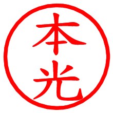 [朱肉の色]を選び、入力窓に“本光”と入力して[生成]ボタンを押すと、印影が更新され、リンクから電子印鑑(デジタル印影)がダウンロードできます。 電子印鑑「本光」の作り方文字表示が変なときや、文字バランスが悪いときは[字形切替]のチェックボックスでON/OFFを切り替え[生成]しなおしてください。 生成される画像は通常の印影「本光.png」と、にじみを表現した少し太めの印影「本光B.png」の背面透過PNG形式2種と、鮮明なPDF形式の印影「本光.pdf」の計3種類です。 朱肉の微妙な色の違いを7色で表現しました。デフォルト(左端)は、JISが定めた朱肉の色のマンセル値(7.5R 5/14)をRGB値(217,66,54)に変換したものになっています。 「電子透かし」にチェックを入れて[生成]ボタンを押すと、タイムスタンプを電子透かしとして埋め込んだセキュアな電子印鑑が作れます。詳細は別ページの「タイムスタンプと電子透かし」でご覧ください。 本光さんの日付印が作れます。「日付スタンプメーカー」は、社内向けの書類に利用されることの多い日付印(データ印)が無料で作れるWebアプリケーションです。中段に日付が入り、上段と下段は、ともに8文字まで文字が入ります。 ![]() 古代文字で落款印が作れます。「落款スタンプメーカー」で作品を引き立たせる落款印が作れます。