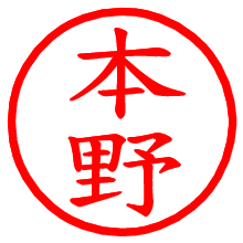 [朱肉の色]を選び、入力窓に“本野”と入力して[生成]ボタンを押すと、印影が更新され、リンクから電子印鑑(デジタル印影)がダウンロードできます。 電子印鑑「本野」の作り方文字表示が変なときや、文字バランスが悪いときは[字形切替]のチェックボックスでON/OFFを切り替え[生成]しなおしてください。 生成される画像は通常の印影「本野.png」と、にじみを表現した少し太めの印影「本野B.png」の背面透過PNG形式2種と、鮮明なPDF形式の印影「本野.pdf」の計3種類です。 朱肉の微妙な色の違いを7色で表現しました。デフォルト(左端)は、JISが定めた朱肉の色のマンセル値(7.5R 5/14)をRGB値(217,66,54)に変換したものになっています。 「電子透かし」にチェックを入れて[生成]ボタンを押すと、タイムスタンプを電子透かしとして埋め込んだセキュアな電子印鑑が作れます。詳細は別ページの「タイムスタンプと電子透かし」でご覧ください。 本野さんの日付印が作れます。「日付スタンプメーカー」は、社内向けの書類に利用されることの多い日付印(データ印)が無料で作れるWebアプリケーションです。中段に日付が入り、上段と下段は、ともに8文字まで文字が入ります。 ![]() 古代文字で落款印が作れます。「落款スタンプメーカー」で作品を引き立たせる落款印が作れます。