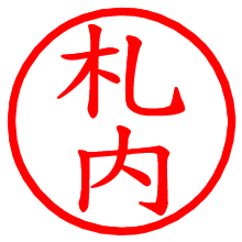 [朱肉の色]を選び、入力窓に“札内”と入力して[生成]ボタンを押すと、印影が更新され、リンクから電子印鑑(デジタル印影)がダウンロードできます。 電子印鑑「札内」の作り方文字表示が変なときや、文字バランスが悪いときは[字形切替]のチェックボックスでON/OFFを切り替え[生成]しなおしてください。 生成される画像は通常の印影「札内.png」と、にじみを表現した少し太めの印影「札内B.png」の背面透過PNG形式2種と、鮮明なPDF形式の印影「札内.pdf」の計3種類です。 朱肉の微妙な色の違いを7色で表現しました。デフォルト(左端)は、JISが定めた朱肉の色のマンセル値(7.5R 5/14)をRGB値(217,66,54)に変換したものになっています。 「電子透かし」にチェックを入れて[生成]ボタンを押すと、タイムスタンプを電子透かしとして埋め込んだセキュアな電子印鑑が作れます。詳細は別ページの「タイムスタンプと電子透かし」でご覧ください。 札内さんの日付印が作れます。「日付スタンプメーカー」は、社内向けの書類に利用されることの多い日付印(データ印)が無料で作れるWebアプリケーションです。中段に日付が入り、上段と下段は、ともに8文字まで文字が入ります。 ![]() 古代文字で落款印が作れます。「落款スタンプメーカー」で作品を引き立たせる落款印が作れます。