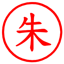 [朱肉の色]を選び、入力窓に“朱”と入力して[生成]ボタンを押すと、印影が更新され、リンクから電子印鑑(デジタル印影)がダウンロードできます。 電子印鑑「朱」の作り方文字表示が変なときや、文字バランスが悪いときは[字形切替]のチェックボックスでON/OFFを切り替え[生成]しなおしてください。 生成される画像は通常の印影「朱.png」と、にじみを表現した少し太めの印影「朱B.png」の背面透過PNG形式2種と、鮮明なPDF形式の印影「朱.pdf」の計3種類です。 朱肉の微妙な色の違いを7色で表現しました。デフォルト(左端)は、JISが定めた朱肉の色のマンセル値(7.5R 5/14)をRGB値(217,66,54)に変換したものになっています。 「電子透かし」にチェックを入れて[生成]ボタンを押すと、タイムスタンプを電子透かしとして埋め込んだセキュアな電子印鑑が作れます。詳細は別ページの「タイムスタンプと電子透かし」でご覧ください。 朱さんの日付印が作れます。「日付スタンプメーカー」は、社内向けの書類に利用されることの多い日付印(データ印)が無料で作れるWebアプリケーションです。中段に日付が入り、上段と下段は、ともに8文字まで文字が入ります。 ![]() 古代文字で落款印が作れます。「落款スタンプメーカー」で作品を引き立たせる落款印が作れます。