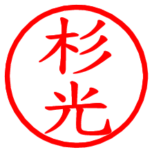 [朱肉の色]を選び、入力窓に“杉光”と入力して[生成]ボタンを押すと、印影が更新され、リンクから電子印鑑(デジタル印影)がダウンロードできます。 電子印鑑「杉光」の作り方文字表示が変なときや、文字バランスが悪いときは[字形切替]のチェックボックスでON/OFFを切り替え[生成]しなおしてください。 生成される画像は通常の印影「杉光.png」と、にじみを表現した少し太めの印影「杉光B.png」の背面透過PNG形式2種と、鮮明なPDF形式の印影「杉光.pdf」の計3種類です。 朱肉の微妙な色の違いを7色で表現しました。デフォルト(左端)は、JISが定めた朱肉の色のマンセル値(7.5R 5/14)をRGB値(217,66,54)に変換したものになっています。 「電子透かし」にチェックを入れて[生成]ボタンを押すと、タイムスタンプを電子透かしとして埋め込んだセキュアな電子印鑑が作れます。詳細は別ページの「タイムスタンプと電子透かし」でご覧ください。 杉光さんの日付印が作れます。「日付スタンプメーカー」は、社内向けの書類に利用されることの多い日付印(データ印)が無料で作れるWebアプリケーションです。中段に日付が入り、上段と下段は、ともに8文字まで文字が入ります。 ![]() 古代文字で落款印が作れます。「落款スタンプメーカー」で作品を引き立たせる落款印が作れます。
