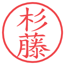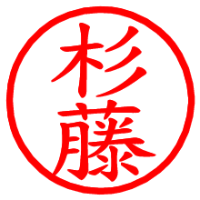 [朱肉の色]を選び、入力窓に“杉藤”と入力して[生成]ボタンを押すと、印影が更新され、リンクから電子印鑑(デジタル印影)がダウンロードできます。 電子印鑑「杉藤」の作り方文字表示が変なときや、文字バランスが悪いときは[字形切替]のチェックボックスでON/OFFを切り替え[生成]しなおしてください。 生成される画像は通常の印影「杉藤.png」と、にじみを表現した少し太めの印影「杉藤B.png」の背面透過PNG形式2種と、鮮明なPDF形式の印影「杉藤.pdf」の計3種類です。 朱肉の微妙な色の違いを7色で表現しました。デフォルト(左端)は、JISが定めた朱肉の色のマンセル値(7.5R 5/14)をRGB値(217,66,54)に変換したものになっています。 「電子透かし」にチェックを入れて[生成]ボタンを押すと、タイムスタンプを電子透かしとして埋め込んだセキュアな電子印鑑が作れます。詳細は別ページの「タイムスタンプと電子透かし」でご覧ください。 杉藤さんの日付印が作れます。「日付スタンプメーカー」は、社内向けの書類に利用されることの多い日付印(データ印)が無料で作れるWebアプリケーションです。中段に日付が入り、上段と下段は、ともに8文字まで文字が入ります。 ![]() 古代文字で落款印が作れます。「落款スタンプメーカー」で作品を引き立たせる落款印が作れます。