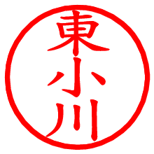 [朱肉の色]を選び、入力窓に“東小川”と入力して[生成]ボタンを押すと、印影が更新され、リンクから電子印鑑(デジタル印影)がダウンロードできます。 電子印鑑「東小川」の作り方文字表示が変なときや、文字バランスが悪いときは[字形切替]のチェックボックスでON/OFFを切り替え[生成]しなおしてください。 生成される画像は通常の印影「東小川.png」と、にじみを表現した少し太めの印影「東小川B.png」の背面透過PNG形式2種と、鮮明なPDF形式の印影「東小川.pdf」の計3種類です。 朱肉の微妙な色の違いを7色で表現しました。デフォルト(左端)は、JISが定めた朱肉の色のマンセル値(7.5R 5/14)をRGB値(217,66,54)に変換したものになっています。 「電子透かし」にチェックを入れて[生成]ボタンを押すと、タイムスタンプを電子透かしとして埋め込んだセキュアな電子印鑑が作れます。詳細は別ページの「タイムスタンプと電子透かし」でご覧ください。 東小川さんの日付印が作れます。「日付スタンプメーカー」は、社内向けの書類に利用されることの多い日付印(データ印)が無料で作れるWebアプリケーションです。中段に日付が入り、上段と下段は、ともに8文字まで文字が入ります。 ![]() 古代文字で落款印が作れます。「落款スタンプメーカー」で作品を引き立たせる落款印が作れます。