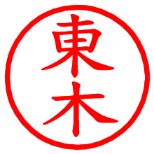 [朱肉の色]を選び、入力窓に“東木”と入力して[生成]ボタンを押すと、印影が更新され、リンクから電子印鑑(デジタル印影)がダウンロードできます。 電子印鑑「東木」の作り方文字表示が変なときや、文字バランスが悪いときは[字形切替]のチェックボックスでON/OFFを切り替え[生成]しなおしてください。 生成される画像は通常の印影「東木.png」と、にじみを表現した少し太めの印影「東木B.png」の背面透過PNG形式2種と、鮮明なPDF形式の印影「東木.pdf」の計3種類です。 朱肉の微妙な色の違いを7色で表現しました。デフォルト(左端)は、JISが定めた朱肉の色のマンセル値(7.5R 5/14)をRGB値(217,66,54)に変換したものになっています。 「電子透かし」にチェックを入れて[生成]ボタンを押すと、タイムスタンプを電子透かしとして埋め込んだセキュアな電子印鑑が作れます。詳細は別ページの「タイムスタンプと電子透かし」でご覧ください。 東木さんの日付印が作れます。「日付スタンプメーカー」は、社内向けの書類に利用されることの多い日付印(データ印)が無料で作れるWebアプリケーションです。中段に日付が入り、上段と下段は、ともに8文字まで文字が入ります。 ![]() 古代文字で落款印が作れます。「落款スタンプメーカー」で作品を引き立たせる落款印が作れます。