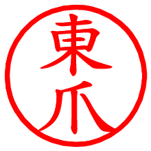 [朱肉の色]を選び、入力窓に“東爪”と入力して[生成]ボタンを押すと、印影が更新され、リンクから電子印鑑(デジタル印影)がダウンロードできます。 電子印鑑「東爪」の作り方文字表示が変なときや、文字バランスが悪いときは[字形切替]のチェックボックスでON/OFFを切り替え[生成]しなおしてください。 生成される画像は通常の印影「東爪.png」と、にじみを表現した少し太めの印影「東爪B.png」の背面透過PNG形式2種と、鮮明なPDF形式の印影「東爪.pdf」の計3種類です。 朱肉の微妙な色の違いを7色で表現しました。デフォルト(左端)は、JISが定めた朱肉の色のマンセル値(7.5R 5/14)をRGB値(217,66,54)に変換したものになっています。 「電子透かし」にチェックを入れて[生成]ボタンを押すと、タイムスタンプを電子透かしとして埋め込んだセキュアな電子印鑑が作れます。詳細は別ページの「タイムスタンプと電子透かし」でご覧ください。 東爪さんの日付印が作れます。「日付スタンプメーカー」は、社内向けの書類に利用されることの多い日付印(データ印)が無料で作れるWebアプリケーションです。中段に日付が入り、上段と下段は、ともに8文字まで文字が入ります。 ![]() 古代文字で落款印が作れます。「落款スタンプメーカー」で作品を引き立たせる落款印が作れます。