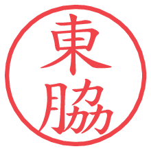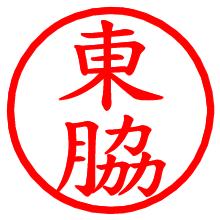 [朱肉の色]を選び、入力窓に“東脇”と入力して[生成]ボタンを押すと、印影が更新され、リンクから電子印鑑(デジタル印影)がダウンロードできます。 電子印鑑「東脇」の作り方文字表示が変なときや、文字バランスが悪いときは[字形切替]のチェックボックスでON/OFFを切り替え[生成]しなおしてください。 生成される画像は通常の印影「東脇.png」と、にじみを表現した少し太めの印影「東脇B.png」の背面透過PNG形式2種と、鮮明なPDF形式の印影「東脇.pdf」の計3種類です。 朱肉の微妙な色の違いを7色で表現しました。デフォルト(左端)は、JISが定めた朱肉の色のマンセル値(7.5R 5/14)をRGB値(217,66,54)に変換したものになっています。 「電子透かし」にチェックを入れて[生成]ボタンを押すと、タイムスタンプを透かしとして埋め込んだセキュアな電子印鑑が作れます。詳細は別ページの「電子透かしとタイムスタンプ」でご覧ください。  東脇さんの日付印が作れます。「日付スタンプメーカー」は、社内向けの書類に利用されることの多い日付印(データ印)が無料で作れるWebアプリケーションです。中段に日付が入り、上段と下段は、ともに8文字まで文字が入ります。 ![]()  古代文字で落款印が作れます。「落款スタンプメーカー」で作品を引き立たせる落款印が作れます。