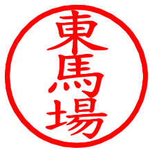[朱肉の色]を選び、入力窓に“東馬場”と入力して[生成]ボタンを押すと、印影が更新され、リンクから電子印鑑(デジタル印影)がダウンロードできます。 電子印鑑「東馬場」の作り方文字表示が変なときや、文字バランスが悪いときは[字形切替]のチェックボックスでON/OFFを切り替え[生成]しなおしてください。 生成される画像は通常の印影「東馬場.png」と、にじみを表現した少し太めの印影「東馬場B.png」の背面透過PNG形式2種と、鮮明なPDF形式の印影「東馬場.pdf」の計3種類です。 朱肉の微妙な色の違いを7色で表現しました。デフォルト(左端)は、JISが定めた朱肉の色のマンセル値(7.5R 5/14)をRGB値(217,66,54)に変換したものになっています。 「電子透かし」にチェックを入れて[生成]ボタンを押すと、タイムスタンプを電子透かしとして埋め込んだセキュアな電子印鑑が作れます。詳細は別ページの「タイムスタンプと電子透かし」でご覧ください。 東馬場さんの日付印が作れます。「日付スタンプメーカー」は、社内向けの書類に利用されることの多い日付印(データ印)が無料で作れるWebアプリケーションです。中段に日付が入り、上段と下段は、ともに8文字まで文字が入ります。 ![]() 古代文字で落款印が作れます。「落款スタンプメーカー」で作品を引き立たせる落款印が作れます。