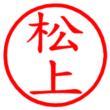 [朱肉の色]を選び、入力窓に“松上”と入力して[生成]ボタンを押すと、印影が更新され、リンクから電子印鑑(デジタル印影)がダウンロードできます。 電子印鑑「松上」の作り方文字表示が変なときや、文字バランスが悪いときは[字形切替]のチェックボックスでON/OFFを切り替え[生成]しなおしてください。 生成される画像は通常の印影「松上.png」と、にじみを表現した少し太めの印影「松上B.png」の背面透過PNG形式2種と、鮮明なPDF形式の印影「松上.pdf」の計3種類です。 朱肉の微妙な色の違いを7色で表現しました。デフォルト(左端)は、JISが定めた朱肉の色のマンセル値(7.5R 5/14)をRGB値(217,66,54)に変換したものになっています。 「電子透かし」にチェックを入れて[生成]ボタンを押すと、タイムスタンプを電子透かしとして埋め込んだセキュアな電子印鑑が作れます。詳細は別ページの「タイムスタンプと電子透かし」でご覧ください。 松上さんの日付印が作れます。「日付スタンプメーカー」は、社内向けの書類に利用されることの多い日付印(データ印)が無料で作れるWebアプリケーションです。中段に日付が入り、上段と下段は、ともに8文字まで文字が入ります。 ![]() 古代文字で落款印が作れます。「落款スタンプメーカー」で作品を引き立たせる落款印が作れます。