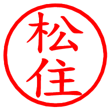 [朱肉の色]を選び、入力窓に“松住”と入力して[生成]ボタンを押すと、印影が更新され、リンクから電子印鑑(デジタル印影)がダウンロードできます。 電子印鑑「松住」の作り方文字表示が変なときや、文字バランスが悪いときは[字形切替]のチェックボックスでON/OFFを切り替え[生成]しなおしてください。 生成される画像は通常の印影「松住.png」と、にじみを表現した少し太めの印影「松住B.png」の背面透過PNG形式2種と、鮮明なPDF形式の印影「松住.pdf」の計3種類です。 朱肉の微妙な色の違いを7色で表現しました。デフォルト(左端)は、JISが定めた朱肉の色のマンセル値(7.5R 5/14)をRGB値(217,66,54)に変換したものになっています。 「電子透かし」にチェックを入れて[生成]ボタンを押すと、タイムスタンプを電子透かしとして埋め込んだセキュアな電子印鑑が作れます。詳細は別ページの「タイムスタンプと電子透かし」でご覧ください。 松住さんの日付印が作れます。「日付スタンプメーカー」は、社内向けの書類に利用されることの多い日付印(データ印)が無料で作れるWebアプリケーションです。中段に日付が入り、上段と下段は、ともに8文字まで文字が入ります。 ![]() 古代文字で落款印が作れます。「落款スタンプメーカー」で作品を引き立たせる落款印が作れます。