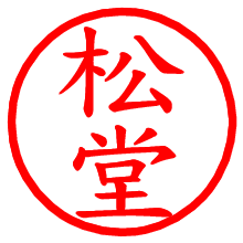 [朱肉の色]を選び、入力窓に“松堂”と入力して[生成]ボタンを押すと、印影が更新され、リンクから電子印鑑(デジタル印影)がダウンロードできます。 電子印鑑「松堂」の作り方文字表示が変なときや、文字バランスが悪いときは[字形切替]のチェックボックスでON/OFFを切り替え[生成]しなおしてください。 生成される画像は通常の印影「松堂.png」と、にじみを表現した少し太めの印影「松堂B.png」の背面透過PNG形式2種と、鮮明なPDF形式の印影「松堂.pdf」の計3種類です。 朱肉の微妙な色の違いを7色で表現しました。デフォルト(左端)は、JISが定めた朱肉の色のマンセル値(7.5R 5/14)をRGB値(217,66,54)に変換したものになっています。 「電子透かし」にチェックを入れて[生成]ボタンを押すと、タイムスタンプを電子透かしとして埋め込んだセキュアな電子印鑑が作れます。詳細は別ページの「タイムスタンプと電子透かし」でご覧ください。 松堂さんの日付印が作れます。「日付スタンプメーカー」は、社内向けの書類に利用されることの多い日付印(データ印)が無料で作れるWebアプリケーションです。中段に日付が入り、上段と下段は、ともに8文字まで文字が入ります。 ![]() 古代文字で落款印が作れます。「落款スタンプメーカー」で作品を引き立たせる落款印が作れます。