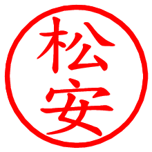 [朱肉の色]を選び、入力窓に“松安”と入力して[生成]ボタンを押すと、印影が更新され、リンクから電子印鑑(デジタル印影)がダウンロードできます。 電子印鑑「松安」の作り方文字表示が変なときや、文字バランスが悪いときは[字形切替]のチェックボックスでON/OFFを切り替え[生成]しなおしてください。 生成される画像は通常の印影「松安.png」と、にじみを表現した少し太めの印影「松安B.png」の背面透過PNG形式2種と、鮮明なPDF形式の印影「松安.pdf」の計3種類です。 朱肉の微妙な色の違いを7色で表現しました。デフォルト(左端)は、JISが定めた朱肉の色のマンセル値(7.5R 5/14)をRGB値(217,66,54)に変換したものになっています。 「電子透かし」にチェックを入れて[生成]ボタンを押すと、タイムスタンプを電子透かしとして埋め込んだセキュアな電子印鑑が作れます。詳細は別ページの「タイムスタンプと電子透かし」でご覧ください。 松安さんの日付印が作れます。「日付スタンプメーカー」は、社内向けの書類に利用されることの多い日付印(データ印)が無料で作れるWebアプリケーションです。中段に日付が入り、上段と下段は、ともに8文字まで文字が入ります。 ![]() 古代文字で落款印が作れます。「落款スタンプメーカー」で作品を引き立たせる落款印が作れます。