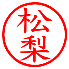 [朱肉の色]を選び、入力窓に“松梨”と入力して[生成]ボタンを押すと、印影が更新され、リンクから電子印鑑(デジタル印影)がダウンロードできます。 電子印鑑「松梨」の作り方文字表示が変なときや、文字バランスが悪いときは[字形切替]のチェックボックスでON/OFFを切り替え[生成]しなおしてください。 生成される画像は通常の印影「松梨.png」と、にじみを表現した少し太めの印影「松梨B.png」の背面透過PNG形式2種と、鮮明なPDF形式の印影「松梨.pdf」の計3種類です。 朱肉の微妙な色の違いを7色で表現しました。デフォルト(左端)は、JISが定めた朱肉の色のマンセル値(7.5R 5/14)をRGB値(217,66,54)に変換したものになっています。 「電子透かし」にチェックを入れて[生成]ボタンを押すと、タイムスタンプを電子透かしとして埋め込んだセキュアな電子印鑑が作れます。詳細は別ページの「タイムスタンプと電子透かし」でご覧ください。 松梨さんの日付印が作れます。「日付スタンプメーカー」は、社内向けの書類に利用されることの多い日付印(データ印)が無料で作れるWebアプリケーションです。中段に日付が入り、上段と下段は、ともに8文字まで文字が入ります。 ![]() 古代文字で落款印が作れます。「落款スタンプメーカー」で作品を引き立たせる落款印が作れます。