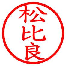 [朱肉の色]を選び、入力窓に“松比良”と入力して[生成]ボタンを押すと、印影が更新され、リンクから電子印鑑(デジタル印影)がダウンロードできます。 電子印鑑「松比良」の作り方文字表示が変なときや、文字バランスが悪いときは[字形切替]のチェックボックスでON/OFFを切り替え[生成]しなおしてください。 生成される画像は通常の印影「松比良.png」と、にじみを表現した少し太めの印影「松比良B.png」の背面透過PNG形式2種と、鮮明なPDF形式の印影「松比良.pdf」の計3種類です。 朱肉の微妙な色の違いを7色で表現しました。デフォルト(左端)は、JISが定めた朱肉の色のマンセル値(7.5R 5/14)をRGB値(217,66,54)に変換したものになっています。 「電子透かし」にチェックを入れて[生成]ボタンを押すと、タイムスタンプを電子透かしとして埋め込んだセキュアな電子印鑑が作れます。詳細は別ページの「タイムスタンプと電子透かし」でご覧ください。 松比良さんの日付印が作れます。「日付スタンプメーカー」は、社内向けの書類に利用されることの多い日付印(データ印)が無料で作れるWebアプリケーションです。中段に日付が入り、上段と下段は、ともに8文字まで文字が入ります。 ![]() 古代文字で落款印が作れます。「落款スタンプメーカー」で作品を引き立たせる落款印が作れます。