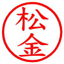 [朱肉の色]を選び、入力窓に“松金”と入力して[生成]ボタンを押すと、印影が更新され、リンクから電子印鑑(デジタル印影)がダウンロードできます。 電子印鑑「松金」の作り方文字表示が変なときや、文字バランスが悪いときは[字形切替]のチェックボックスでON/OFFを切り替え[生成]しなおしてください。 生成される画像は通常の印影「松金.png」と、にじみを表現した少し太めの印影「松金B.png」の背面透過PNG形式2種と、鮮明なPDF形式の印影「松金.pdf」の計3種類です。 朱肉の微妙な色の違いを7色で表現しました。デフォルト(左端)は、JISが定めた朱肉の色のマンセル値(7.5R 5/14)をRGB値(217,66,54)に変換したものになっています。 「電子透かし」にチェックを入れて[生成]ボタンを押すと、タイムスタンプを電子透かしとして埋め込んだセキュアな電子印鑑が作れます。詳細は別ページの「タイムスタンプと電子透かし」でご覧ください。 松金さんの日付印が作れます。「日付スタンプメーカー」は、社内向けの書類に利用されることの多い日付印(データ印)が無料で作れるWebアプリケーションです。中段に日付が入り、上段と下段は、ともに8文字まで文字が入ります。 ![]() 古代文字で落款印が作れます。「落款スタンプメーカー」で作品を引き立たせる落款印が作れます。