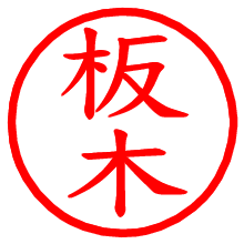 [朱肉の色]を選び、入力窓に“板木”と入力して[生成]ボタンを押すと、印影が更新され、リンクから電子印鑑(デジタル印影)がダウンロードできます。 電子印鑑「板木」の作り方文字表示が変なときや、文字バランスが悪いときは[字形切替]のチェックボックスでON/OFFを切り替え[生成]しなおしてください。 生成される画像は通常の印影「板木.png」と、にじみを表現した少し太めの印影「板木B.png」の背面透過PNG形式2種と、鮮明なPDF形式の印影「板木.pdf」の計3種類です。 朱肉の微妙な色の違いを7色で表現しました。デフォルト(左端)は、JISが定めた朱肉の色のマンセル値(7.5R 5/14)をRGB値(217,66,54)に変換したものになっています。 「電子透かし」にチェックを入れて[生成]ボタンを押すと、タイムスタンプを電子透かしとして埋め込んだセキュアな電子印鑑が作れます。詳細は別ページの「タイムスタンプと電子透かし」でご覧ください。 板木さんの日付印が作れます。「日付スタンプメーカー」は、社内向けの書類に利用されることの多い日付印(データ印)が無料で作れるWebアプリケーションです。中段に日付が入り、上段と下段は、ともに8文字まで文字が入ります。 ![]() 古代文字で落款印が作れます。「落款スタンプメーカー」で作品を引き立たせる落款印が作れます。