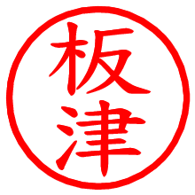 [朱肉の色]を選び、入力窓に“板津”と入力して[生成]ボタンを押すと、印影が更新され、リンクから電子印鑑(デジタル印影)がダウンロードできます。 電子印鑑「板津」の作り方文字表示が変なときや、文字バランスが悪いときは[字形切替]のチェックボックスでON/OFFを切り替え[生成]しなおしてください。 生成される画像は通常の印影「板津.png」と、にじみを表現した少し太めの印影「板津B.png」の背面透過PNG形式2種と、鮮明なPDF形式の印影「板津.pdf」の計3種類です。 朱肉の微妙な色の違いを7色で表現しました。デフォルト(左端)は、JISが定めた朱肉の色のマンセル値(7.5R 5/14)をRGB値(217,66,54)に変換したものになっています。 「電子透かし」にチェックを入れて[生成]ボタンを押すと、タイムスタンプを透かしとして埋め込んだセキュアな電子印鑑が作れます。詳細は別ページの「電子透かしとタイムスタンプ」でご覧ください。 板津さんの日付印が作れます。「日付スタンプメーカー」は、社内向けの書類に利用されることの多い日付印(データ印)が無料で作れるWebアプリケーションです。中段に日付が入り、上段と下段は、ともに8文字まで文字が入ります。 ![]() 古代文字で落款印が作れます。「落款スタンプメーカー」で作品を引き立たせる落款印が作れます。