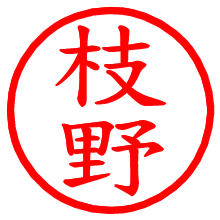 [朱肉の色]を選び、入力窓に“枝野”と入力して[生成]ボタンを押すと、印影が更新され、リンクから電子印鑑(デジタル印影)がダウンロードできます。 電子印鑑「枝野」の作り方文字表示が変なときや、文字バランスが悪いときは[字形切替]のチェックボックスでON/OFFを切り替え[生成]しなおしてください。 生成される画像は通常の印影「枝野.png」と、にじみを表現した少し太めの印影「枝野B.png」の背面透過PNG形式2種と、鮮明なPDF形式の印影「枝野.pdf」の計3種類です。 朱肉の微妙な色の違いを7色で表現しました。デフォルト(左端)は、JISが定めた朱肉の色のマンセル値(7.5R 5/14)をRGB値(217,66,54)に変換したものになっています。 「電子透かし」にチェックを入れて[生成]ボタンを押すと、タイムスタンプを電子透かしとして埋め込んだセキュアな電子印鑑が作れます。詳細は別ページの「タイムスタンプと電子透かし」でご覧ください。 枝野さんの日付印が作れます。「日付スタンプメーカー」は、社内向けの書類に利用されることの多い日付印(データ印)が無料で作れるWebアプリケーションです。中段に日付が入り、上段と下段は、ともに8文字まで文字が入ります。 ![]() 古代文字で落款印が作れます。「落款スタンプメーカー」で作品を引き立たせる落款印が作れます。