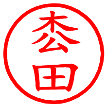 [朱肉の色]を選び、入力窓に“枩田”と入力して[生成]ボタンを押すと、印影が更新され、リンクから電子印鑑(デジタル印影)がダウンロードできます。 電子印鑑「枩田」の作り方文字表示が変なときや、文字バランスが悪いときは[字形切替]のチェックボックスでON/OFFを切り替え[生成]しなおしてください。 生成される画像は通常の印影「枩田.png」と、にじみを表現した少し太めの印影「枩田B.png」の背面透過PNG形式2種と、鮮明なPDF形式の印影「枩田.pdf」の計3種類です。 朱肉の微妙な色の違いを7色で表現しました。デフォルト(左端)は、JISが定めた朱肉の色のマンセル値(7.5R 5/14)をRGB値(217,66,54)に変換したものになっています。 「電子透かし」にチェックを入れて[生成]ボタンを押すと、タイムスタンプを透かしとして埋め込んだセキュアな電子印鑑が作れます。詳細は別ページの「電子透かしとタイムスタンプ」でご覧ください。 ![]() 中段に日付が入り、上段と下段は、ともに8文字まで文字が入ります。 ![]() ![]() ![]() 「落款スタンプメーカー」で作成した落款印の全体的な配置バランスの確認にご利用いただけます。デザインのワンポイントやラインスタンプ等にもお使いください。 ![]() 絵文字が使えてLINEスタンプや年賀状にも使える消しゴムはんこ風の電子印鑑が作れます。 ![]() マイスタンプメーカーとは法的な電子印鑑にはあたりませんので三文判的な位置付けでご利用ください。 |